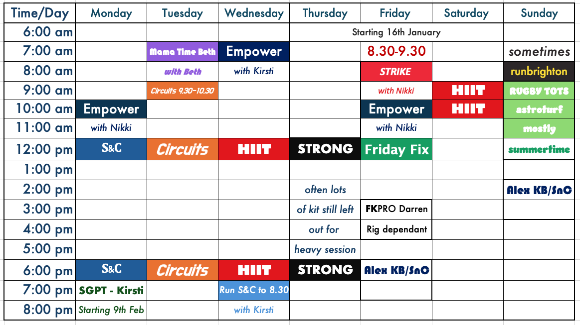 If you’d like to use these areas while a class is running, reach out to the coach ahead of time to check space and kit availability.